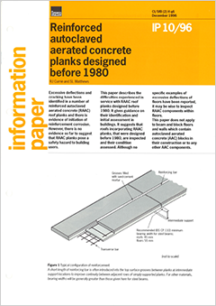 Describes the difficulties experienced in service with RAAC roof planks designed before 1980. It gives guidance on their identification and initial assessment in buildings. It suggests that roofs incorporating pre-1980 RAAC planks are inspected, and their condition assessed. 8 pages.